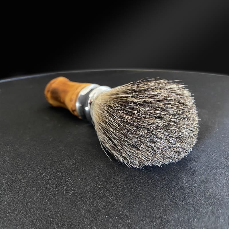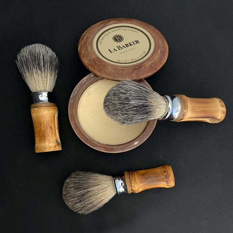 Pincel para barbear com cerdas extra macias produzidas com pelo de Texugo e cabo de bambu natural